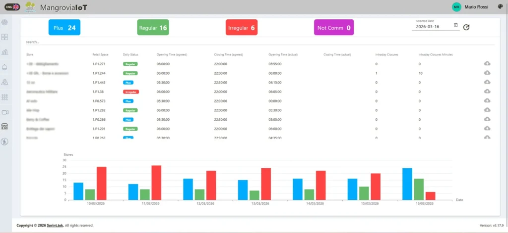 MangroviaAI platform automatically logs exact opening and closing times of store shutter.It ensures operational compliance and efficiency across 90+ stores in a shopping center visited by thousands of people every day.